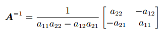 2x2 행렬의 역행렬을 계산하는 방법입니다.