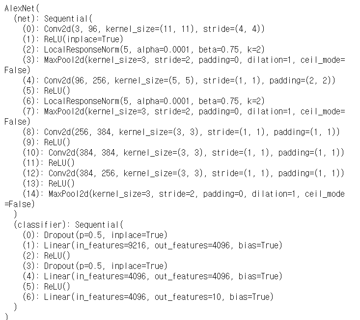 아마 데이터셋도 너무 적고 AlexNet이 얇은 신경망이기 때문이라고 생각합니다....ㅎㅎ
