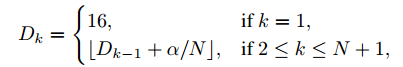 N은 residual unit 전체 수를 나타냅니다. a는 widening factor 입니다. k가 1씩 증가할 때 마다 a/N만큼 차원 수가 증가합니다. N이 4일때, 최종 feature map 차원 수는 16 + (n-1)a/3 이 됩니다.