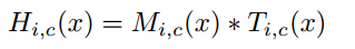 M은 soft mask branch 출력값(0~1 범위), T는 trunk branch 출력값, H는 attention module 출력값 입니다.
