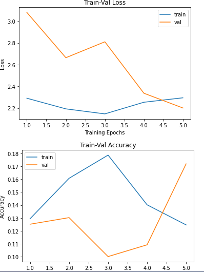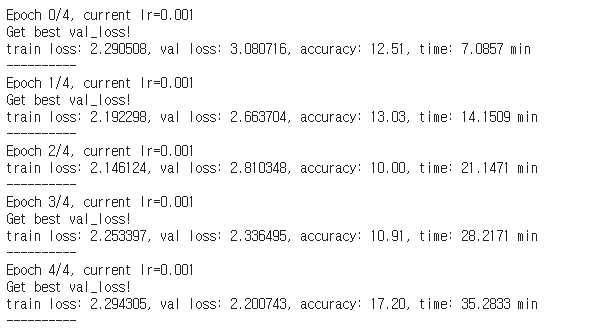 깊은 모델일수록 학습 초기에 수렴하기가 어렵습니다. 4epoch까지 수렴을 못하고 있는 모습을 확인할 수 있네요. optimizer을 바꿔보거나 초기 학습률을 수정해보는 것도 좋은 방법입니다.