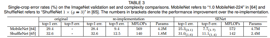 ShuffleNet과 MobileNet에 SE block을 사용한 결과입니다.
