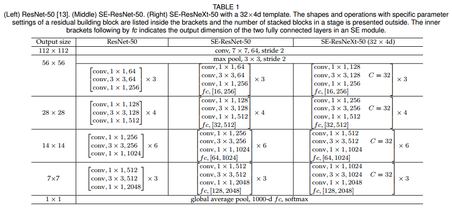 SENet 구조입니다. ResNext-50에 부착하여 사용되었네요.
