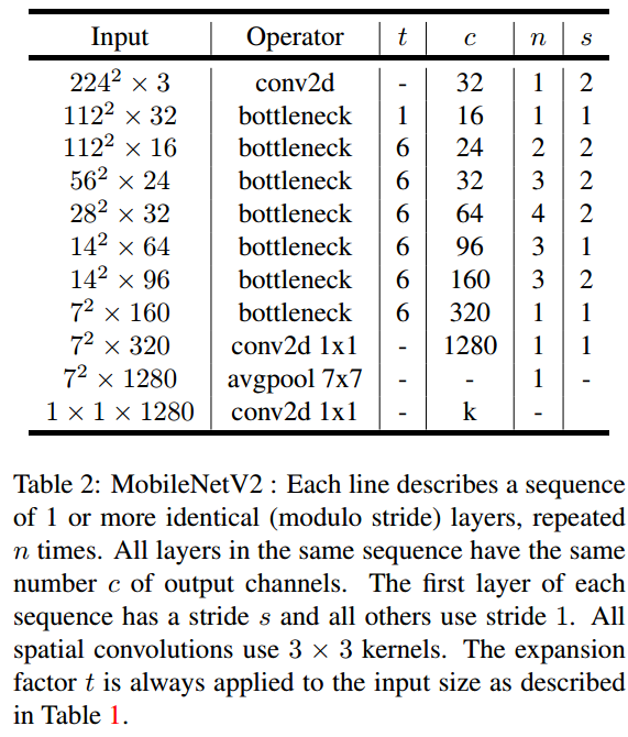 MobileNetV2 architecture