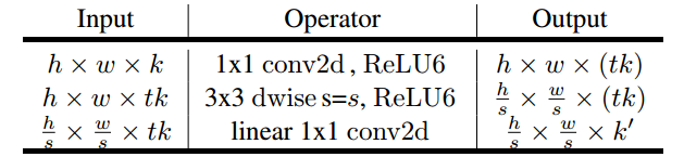 k채널 입력값은 1x1 conv를 거쳐서 tk 채널로 확장되고 3x3conv에 전달됩니다. 그리고 linear 1x1 conv를 거쳐서 k'로 채널 수가 감소합니다.