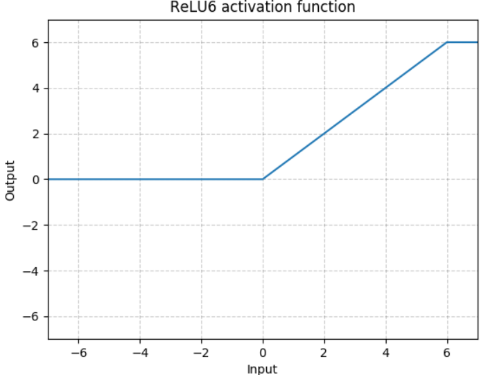 MobileNetV2와 MobileNetV1에서는 ReLU6 함수를 사용합니다. MobileNetV1 논문에서는 이 애기가 나오진 않지만 사용했나 보네요. 연산량 감소 효과가 있다고 합니다.