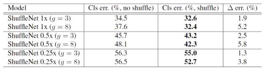 channel shuffle을 사용하여 다양한 그룹의 채널 정보를 활용해, 3x3 group convolution 문제점을 해결했습니다. 그리고 1x1 pointwise group convolution을 활용해서 연산량에서도 이점을 갖습니다. 따라서 제한된 연산량 내에서 더 많은 피쳐맵을 활용할 수 있습니다.