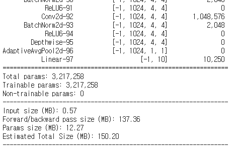 코드는 https://github.com/weiaicunzai/pytorch-cifar100/blob/master/models/mobilenet.py 를 참고했습니다.