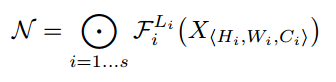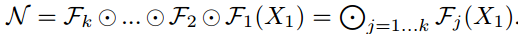 입력값 X가 각 레이어의 함수 F()연산을 거쳐서 출력값 N이 생성됩니다. 이를 일반화하면 다음과 같습니다.