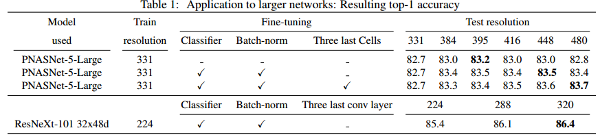 train dataset과 test dataset의 분포를 맞춰주기 위해서 fine-tunning을 제안합니다. global average pooling layer 이전에 BatchNorm layer와 마지막 fc layer를 fine-tunning 하여 성능이 개선됬다고 합니다. 이 부분은 어떻게 fine-tunning을 해주었는지 자세히 안나와있어서 이해를 못했습니다.