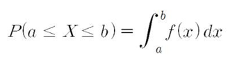 수학적으로 표시하면 $X$가 구간[a, b]에 속할 확률은 구간 [a,b]에서 $f(x)$의 면적으로 구할 수 있습니다.