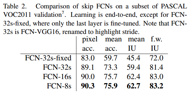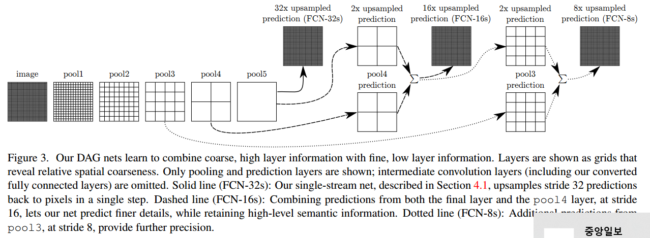 segmentation을 위한 새로운 fully convolutional network를 정의합니다. layer를 결합하고 출력값의 공간적인 정보를 개선합니다.