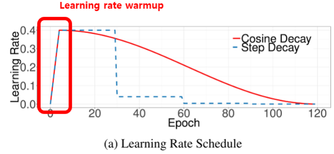 (2) Learning rate warm up
