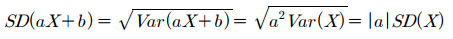 표준편차는 분산의 제곱근이지만 주의해야 할 것은 a가 음수일 수도 있으니 다음과 같은 식이 됩니다.