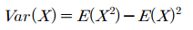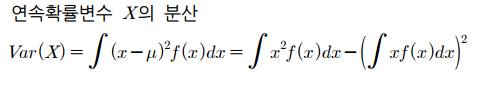 또한 확률변수 $X$의 분산을 $Var(X)$로 표시하므로 다음과 같은 식이 됩니다.