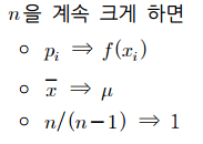 여기서 n을 계속 크게하면 표본분산이 모분산이 됩니다.