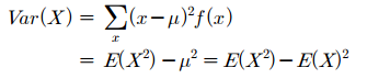 기댓값이 위의 식과 같으므로 분산($Var(X)$)은 다음과 같이 정리할 수 있습니다.
