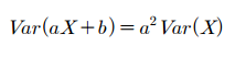 이 식은 확률변수 $X$의 위치에 변화를 주는 $b$는 분산에 영향을 주지 않는다는 것을 보여줍니다. 분산은 퍼져 있는 정도를 나타내는 값으로 어떤 위치에 있든지 영향을 받지 않습니다.