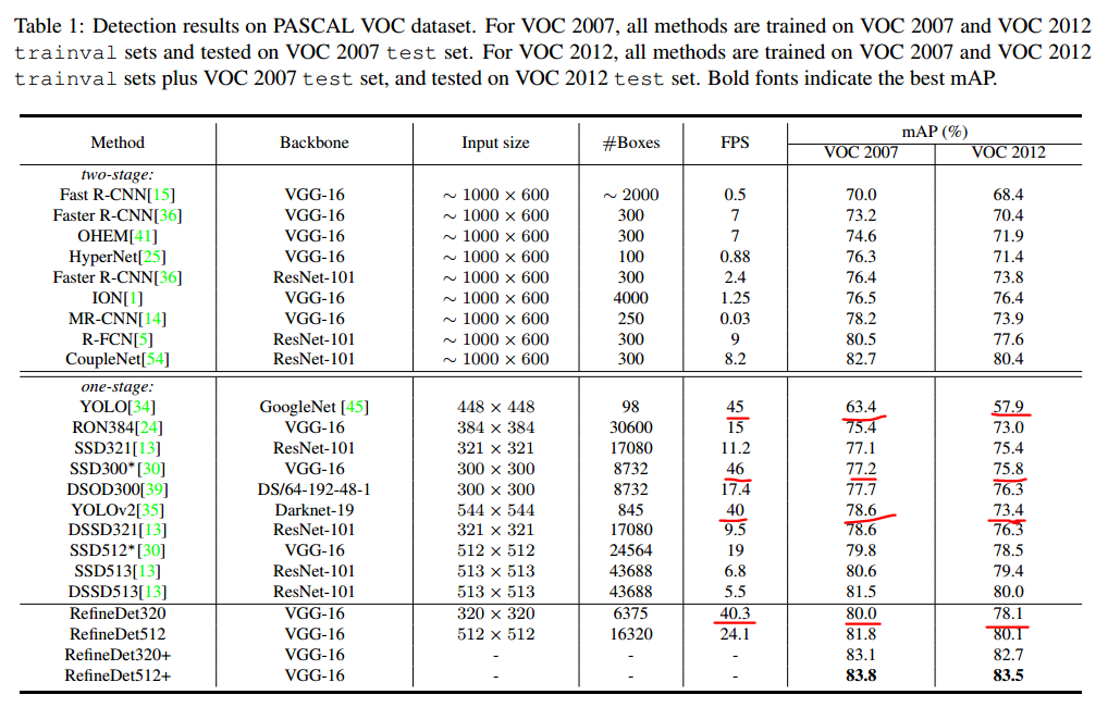 얼핏 2-stage 같아 보이는 refinedet을 1-stage로 분류하는 이유는 아마 생성된 RoI를 RoI pooling로 결합하는 과정이 없어서 그런것 같네요...ㅎㅎ 2-stage는 Roi Pooling으로 생성된 피쳐맵에서 anchor 박스 예측을 수행하는데, 1-stage는 image로부터 추출된 feature map에서 anchor 박스 예측을 수행하는 것으로 생각해볼 수 있는것 같습니다!