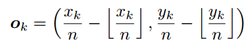 heatmap은 여러 conv layer를 거쳐 down sampling되어있습니다. heatmap에서 검출한 특징점 위치를 원래 이미치 크기로 복원하는 과정에서 내림 연산에 의해 소수점이 손실됩니다. 따라서 정확한 특징점 위치를 예측할 수 없게 됩니다. 이 문제를 해결하기 위해 offset을 계산합니다.