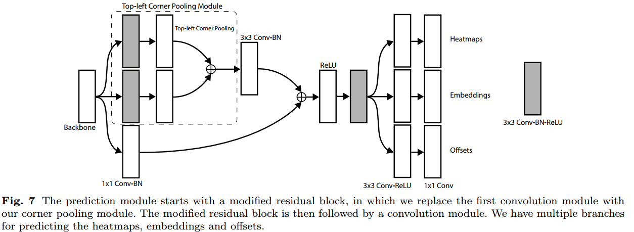heatmap embedding, offset을 예측하는 corner pooling 입니다.