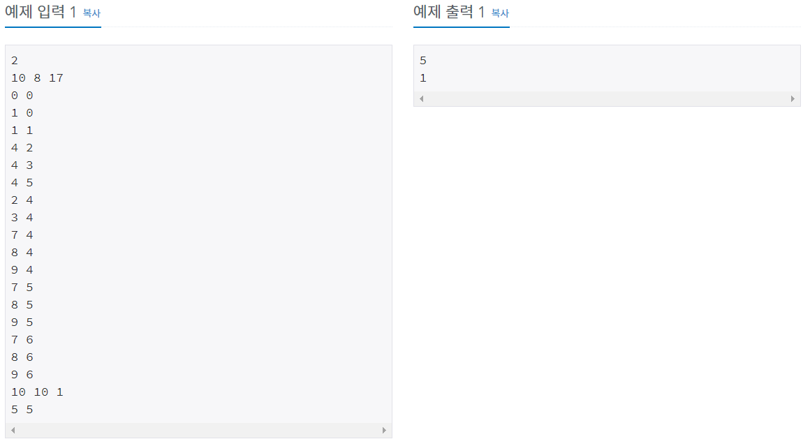 for _ in range(K): # 배추 수 만큼 반복