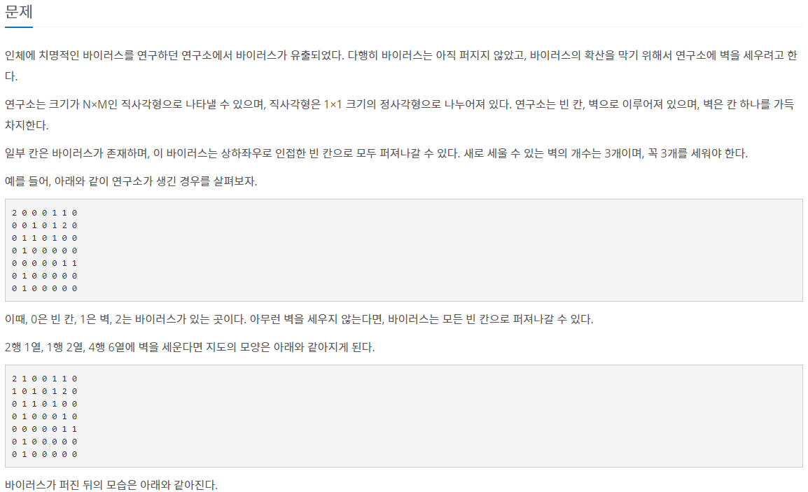 14502번 연구소 - DFS, 브루트 포스