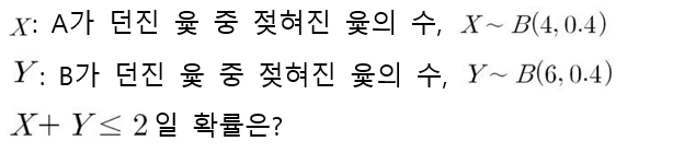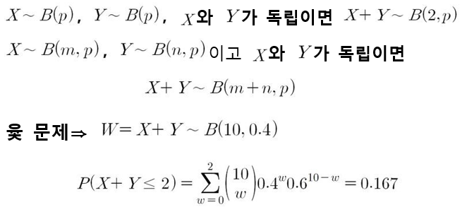 그러므로 $X + Y ~ B(m+n, p)가 됩니다.