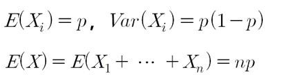 확률변수 $X$는 $n$개의 베르누이 확률변수의 합으로 $X$의 기댓값은 베르누이확률변수의 기댓값의 합으로 표시됩니다.
