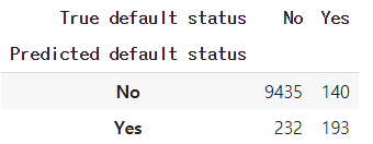 df_.groupby(['Predicted default status','True default status']).size().unstack('True default status')