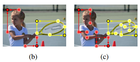 (1) 두 쌍의 특징점만을 활용하기 때문에 객체의 전체 정보를 활용하는데에는 상대적으로 제한이 되어있습니다. 또한 (2) 바운딩 박스의 경계를 예측하는 데에만 집중이 되어있고, 어느 특징점이 연결되어야 하는지에 대한 정보가 부족할 수 있습니다. 이러한 결과로 위 그림 처럼 CornerNet은 많은 수의 incorrect 바운딩 박스를 생성합니다.