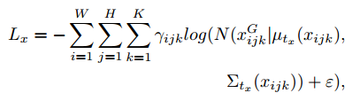 시그모이드로 계산한 평균과 분산이 손실 함수에서 정규분포의 모수로 사용하므로 실제 평균 분산 계산식이 아니여도 평균과 분산의 의미를 갖습니다. xG는 ground-truth를 의미합니다.