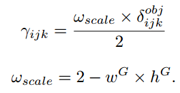 log 앞에 가중치 델타가 붙어있는 것을 확인할 수 있습니다. 이 가중치는 객체 크기에 따라 다른 값을 제공합니다.