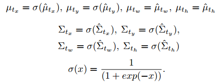 평균과 분산은 아래와 같이 계산하며 분산은 바운딩 박스의 불확실성을 나타냅니다.