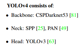 YOLOv4는 빠른 실행 속도와 병렬 연산 최적화를 목표로 최신 기법을 적용하여 SOTA를 달성한 모델입니다. 다양한 최신 기법을 소개하고, 목적에 맞는 기법들을 선택합니다. 모르는 최신 기법들이 많이 보였습니다. 아직 공부가 많이 부족한 것 같네요...ㅎㅎ 추후에 하나하나 리뷰할 계획입니다. YOLOv4는 최종적으로 어떤 방법을 선택했는지 살펴보겠습니다.