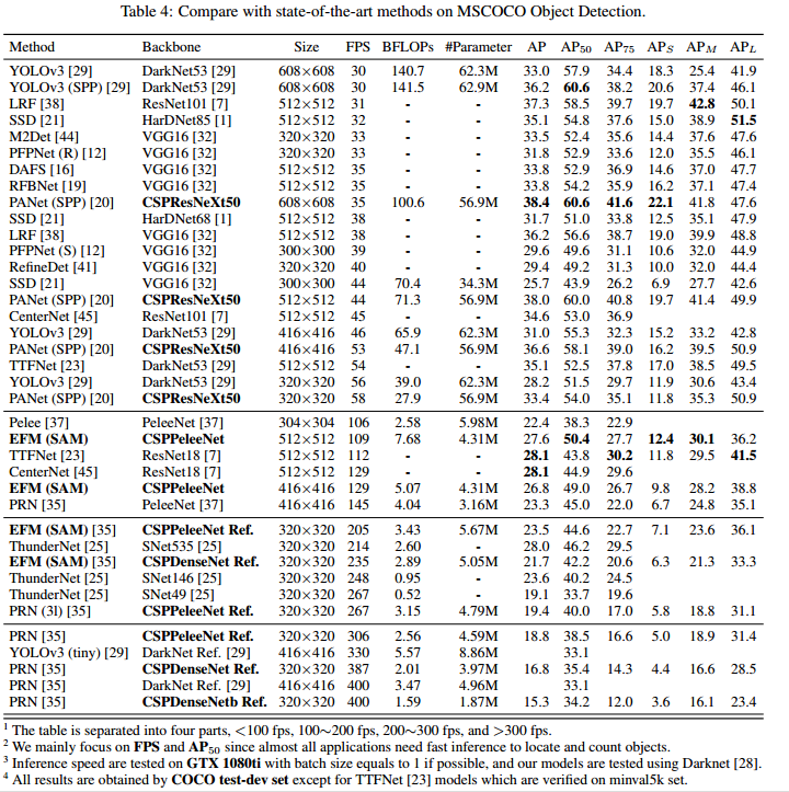 또한 object detector은 feature pyramid을 통합하는 head에서 computational bottleneck이 80% 발생합니다. EFM은 이 computational bottleneck을 44% 감소시킵니다.