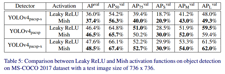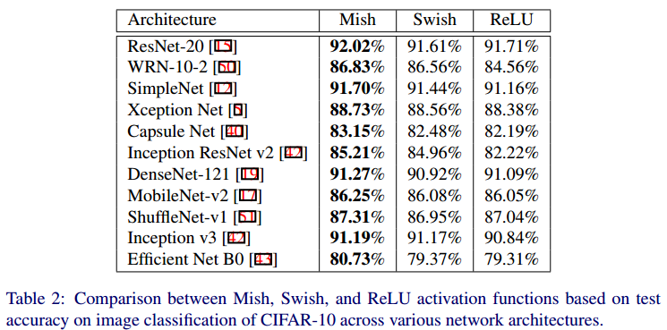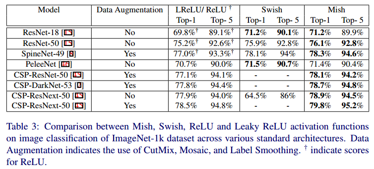 Mish는 Computer Vision 딥러닝 구조에서 Swish, ReLU, Leaky ReLU 보다 좋은 성능을 타나냅니다.
