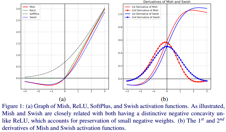 Mish는 smooth, continuous, self-regularized, non-monotonic한 속성을 갖고 있습니다.