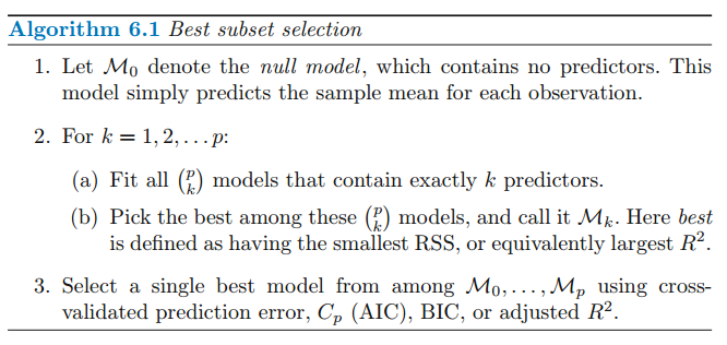 (1) 모든 가능한 predictor, p의 선형 결합에 대해 fitting을 진행합니다.