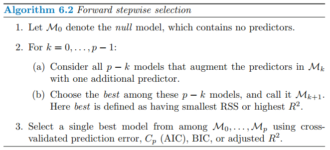 2. 전진 단계적 선택(Forward Stepwise Selection)