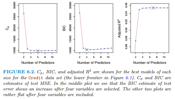 Cp, AIC, BIC, Adjusted R2
