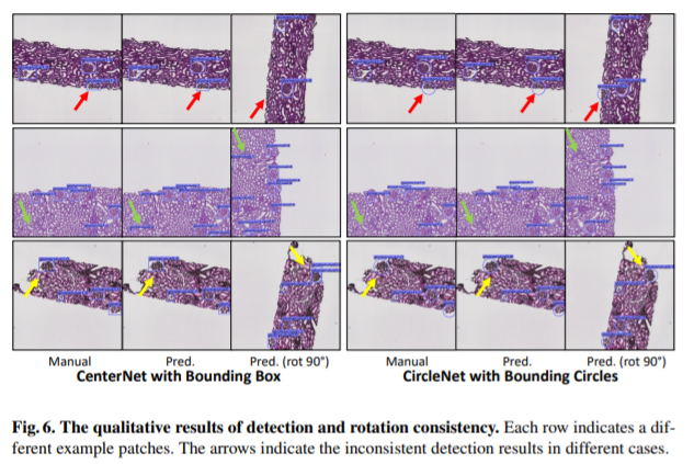 CircleNet은 신장에 존재하는 사구체를 검출하기 위한 모델이며, 기존의 사각형의 바운딩박스가 아닌 원 모양의 바운딩 박스를 사용합니다. 원 모양의 바운딩 박스를 사용함으로써 (1) 객체 검출의 degree of freedom을 감소시킬 수 있습니다. 예를 들어, 바운딩박스 높이와 너비 2로 표현되는 객체가 원 모양을 사용하면 반지름 1로 표현할 수 있습니다. (2) rotation에 invariant 합니다. 회전에 불변하므로 IoU가 더 높게 나오겠네요. (3) 구 형태의 객체에 최적화 되어있습니다.