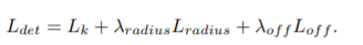 heat map head와 local offset head로 객체의 중심점 좌표를 예측합니다. 또한 중심점 offset 정보는 L_off 로 구할 수 있습니다. circle radius head는 바운딩박스의 반지름을 예측합니다.