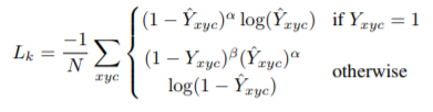 중심좌표 존재 유무에 대한 손실 함수는 focal loss를 사용합니다.
