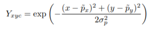ground-truth의 중심 정보는 다음과 같이 설계합니다. 2D gaussian kernel 형태로 설계되어 중심점 주변의 픽셀에도 어느 정도 값을 갖게 됩니다. 중심점 위치에만 값을 갖는 것이 아니라 정규 분포로 주변 픽셀도 값을 갖게 되어 초기 학습에 이점이 있습니다.
