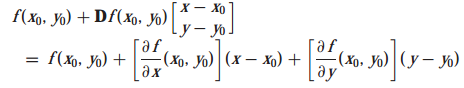 Df(x0,y0)을 사용하면 미분가능성의 정의에 대한 방정식은 다음과 같이 주어집니다.