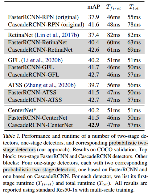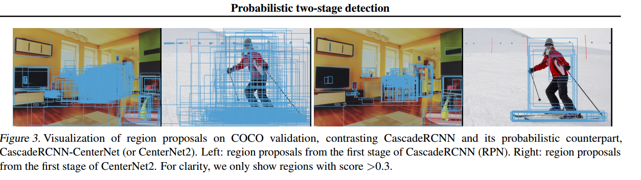 기존의 CenterNet 구조에 FPN 구조를 추가합니다. 다양한 scale에서 객체를 탐지할 수 있도록 한것입니다. 그리고 이 것을 fitst stage로 사용하여 region proposals를 생성하도록 합니다. 뒤에 추가적인 head를 부착하여 class를 예측합니다. CenterNet이외에도 여러 one-stage 모델을 probabilistic two-stage 로 변경할 수 있으며, two-stage 모델 또한 probabilistic two stage로 변경할 수 있습니다.