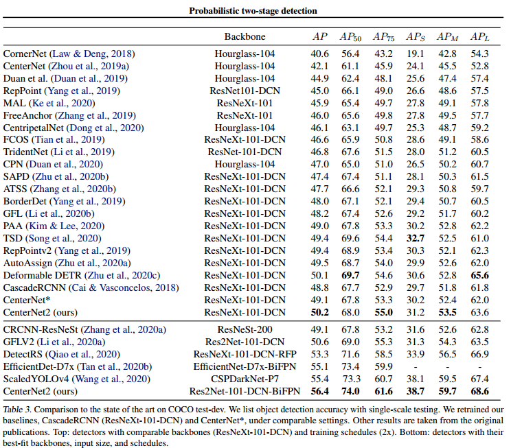 해당 논문은 one-stage 모델을 RPN으로 사용하여 class-agnostic한 region proposal을 생성한 후에 region proposal을 분류하는 head를 추가하여 two-stage 모델로 변경합니다. CenterNet에 FPN구조를 추가하고, CenterNet이 생성한 proposals들을 추가한 head로 분류하여 최종 결과를 나타내는 CenterNetv2는 2021년에 SOTA를 달성합니다. one-stage 모델을 RPN으로 사용한다니 신박하네요..ㅎㅎ