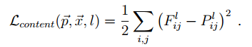 즉, input image와 content image의 CNN 마지막 레이어의 출력값의 MSE가 최소화 되는 방향으로 input image의 값을 변경합니다.