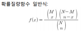 초기하분포의 확률질량함수는 다음과 같습니다.